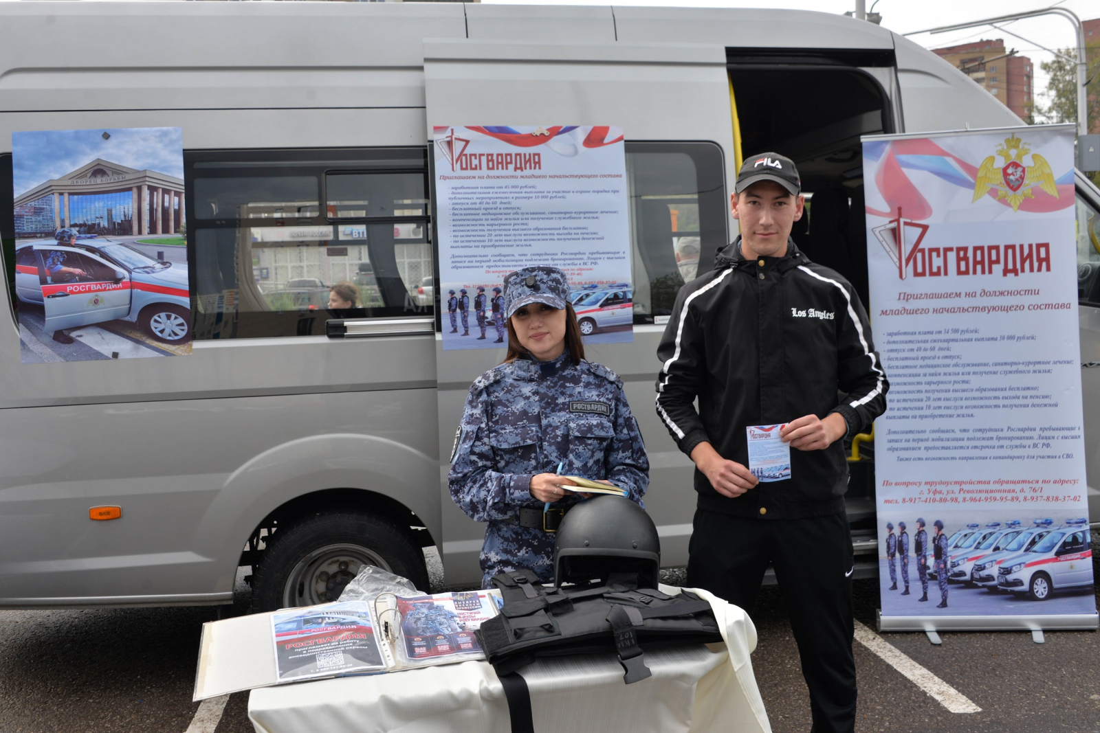 С 28 августа мобильный агитационный пункт Управления Росгвардии по Республике Башкортостан начал свою деятельность в республике. С первых дней его работы информирование граждан проходило в торгово-развлекательных центрах «Планета» и «Акварин» в Октябрьском и Калининском районах Уфы.