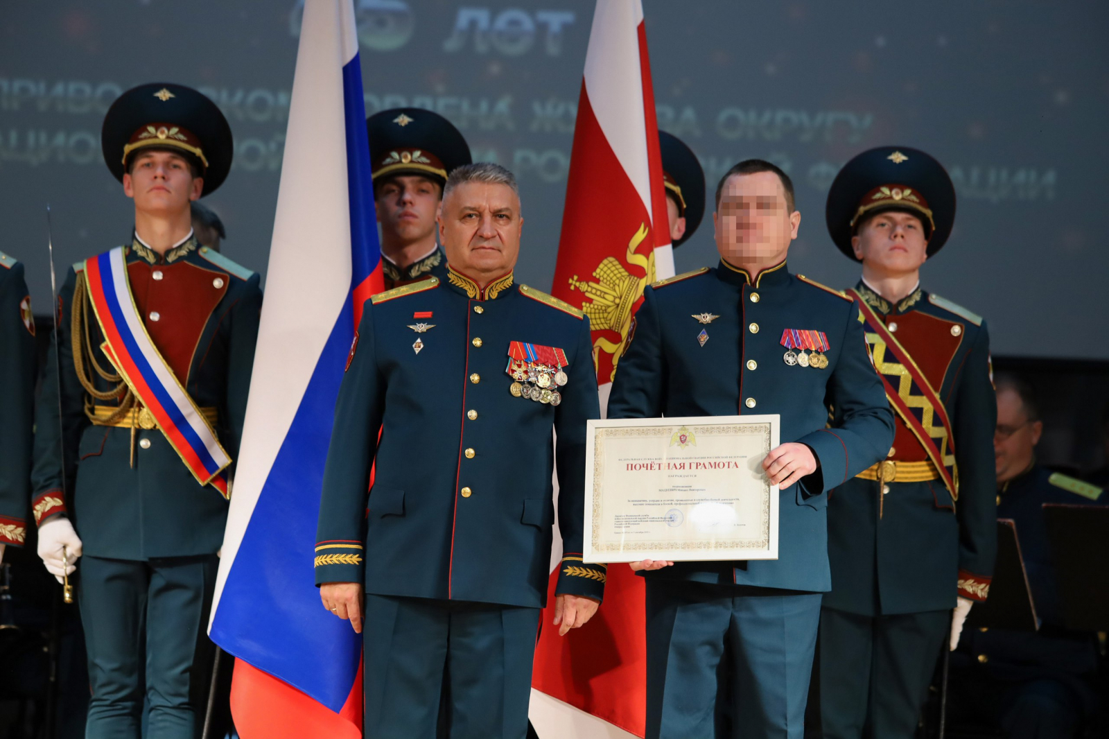 На торжественном собрании в гарнизонном клубе перед собравшимися гостями, зачитали телеграмму директора Федеральной службы войск национальной гвардии Российской Федерации – главнокомандующего войсками национальной гвардии Российской Федерации Героя России генерала армии Виктора Золотова. В своём поздравлении глава ведомства отметил, что военнослужащие и сотрудники Приволжского округа честно и мужественно несут службу в одном из ключевых регионов страны, являют собой надёжный щит государства в борьбе с террористическими и экстремистскими угрозами, стоят на страже тишины и спокойствия граждан.