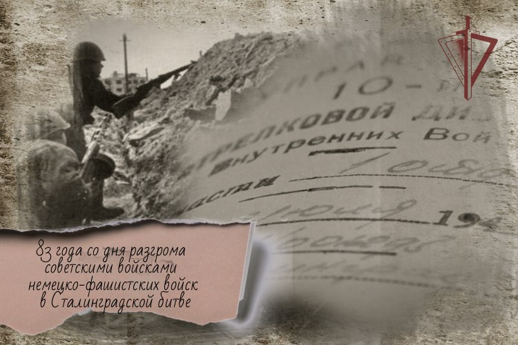 2 февраля в нашей стране отмечается День воинской славы – День разгрома советскими войсками немецко-фашистских войск в Сталинградской битве. Особую роль в этом сражении, ставшем началом коренного перелома в Великой Отечественной войне, сыграли войска НКВД.Оборону на ближних подступах к Сталинграду заняли полки 10-й стрелковой дивизии НКВД, 249-й полк конвойных войск, 91-й полк по охране железных дорог, 73-й отдельный бронепоезд и 178-й полк по охране особо важных предприятий промышленности.Обороняясь на участке Сталинградского тракторного завода, личный состав воинских частей и подразделений 10-й стрелковой дивизии войск НКВД и переданных на ее доукомплектование городских милиционеров до 1 октября 1942 года сдерживал атаки немецко-фашистских войск. Бойцы 272-го полка 10-й стрелковой дивизии, ведя бои в окружении, неоднократно переходили в контратаки.5 сентября 1942 года свой подвиг совершил красноармеец 6-й роты 2-го батальона 272-го полка 10-й стрелковой дивизии Алексей Ващенко, который во время боя своим телом закрыл амбразуру немецкого дзота, дав возможность развить успех контратаки роты. Мужественный воин был посмертно награжден орденом Ленина.