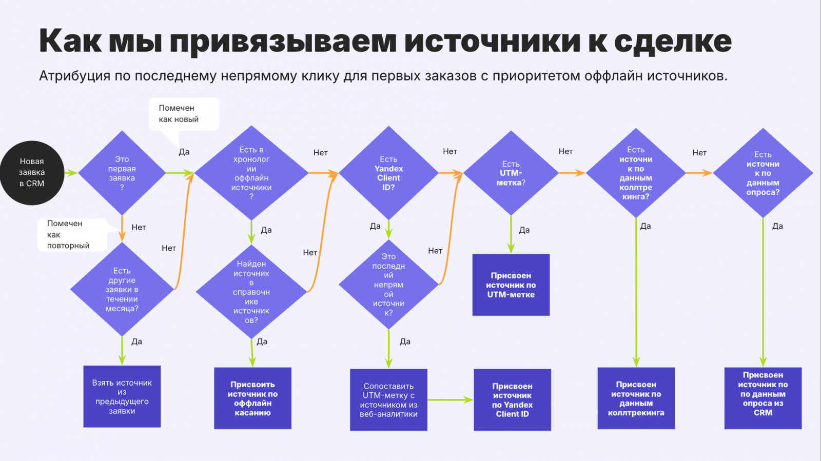 Как изменилась ситуация после внедрения сквозной аналитики:✔️ Сократились расходы на каналы, которые минимально участвовали в атрибуции.✔️ Увеличилась точность отчётов и стало видно, как клиенты взаимодействуют с источниками. Такого результата мы добились за счёт разработки собственной модели атрибуции.✔️ Показатели рентабельности инвестиций в рекламу (ROAS) заметно улучшились — вложения окупались лучше, чем в среднем по рынку в сфере недвижимости.