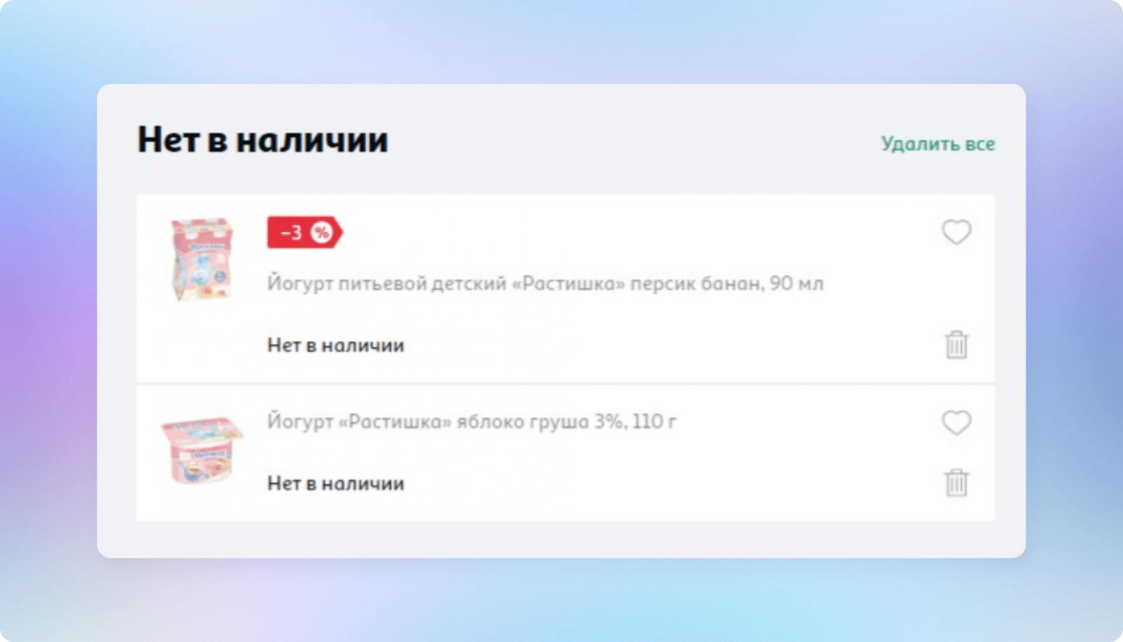 Раньше выбывший из наличия товар выделялся в отдельном блоке «Нет в наличии»: пользователи почти никак не могли с ним проконтактировать. Единственный вариант — перейти в карточку товара и подобрать какие-нибудь позиции из рекомендаций. Но так почти никто не делал.