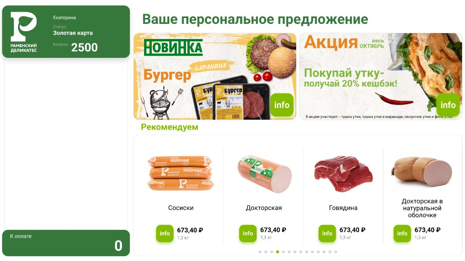 Магазины «Раменского деликатеса» прилавочного типа, с работающими за ними кассирами. И из-за этого возникла проблема – кассир не мог знать историю покупок и предпочтения всех посетителей. Чаще всего он допродавал не интересные клиенту товары, а те, которые выгодны ему самому с финансовой точки зрения – например, чтобы закрыть смену, получить премию и т.д.