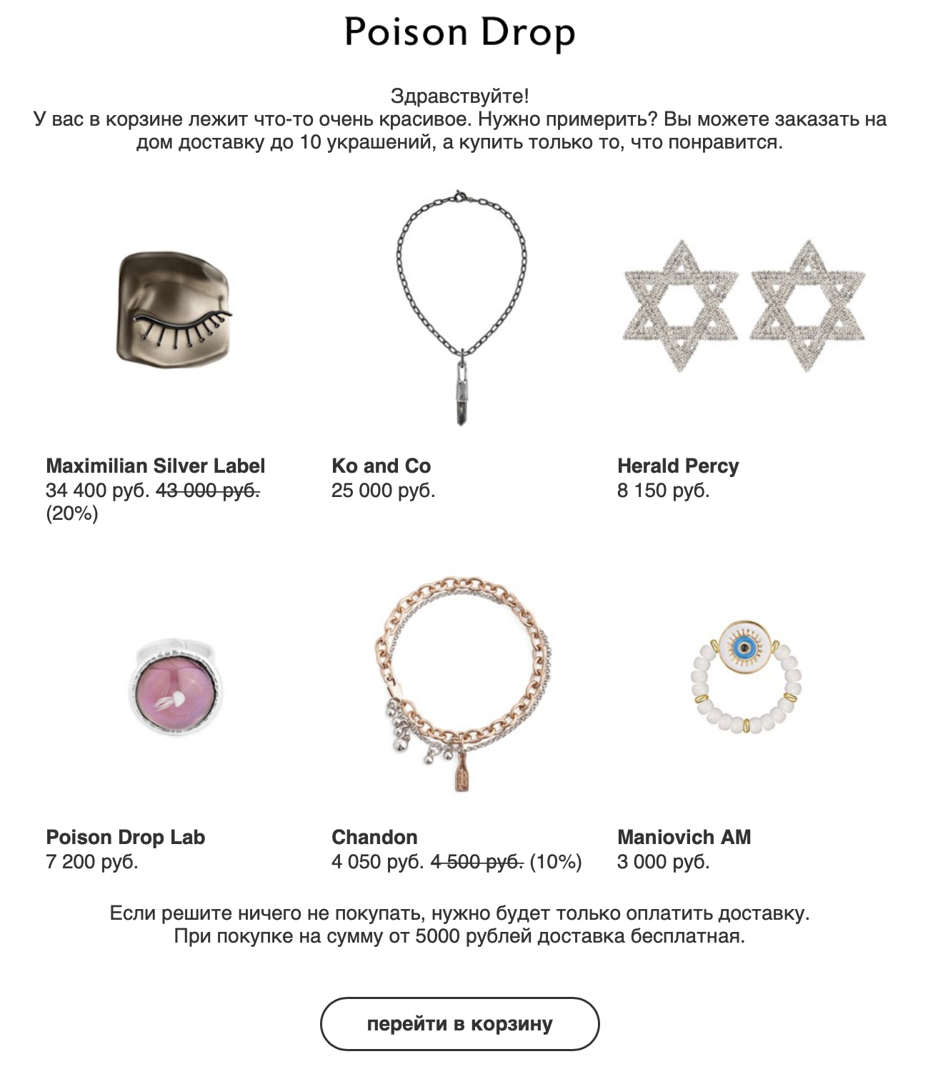 Мы универмаг дизайнерских украшений. У нас представлены и известные мировые бренды: Marni, MM6 Maison Margiela – и нишевые: золото с драгоценными камнями и трендовая бижутерия, минималистичные украшения и акцентный оверсайз.У нас широкий ассортимент и широкая аудитория непохожих друг на друга людей со своим индивидуальным стилем. С каждым нам важно коммуницировать уместно, своевременно и персонализировано. Общаться офлайн: магазины Poison Drop работают в Москве, Санкт-Петербурге, Краснодаре и Казани. И онлайн: на сайте, в рассылках и мобильном приложении.