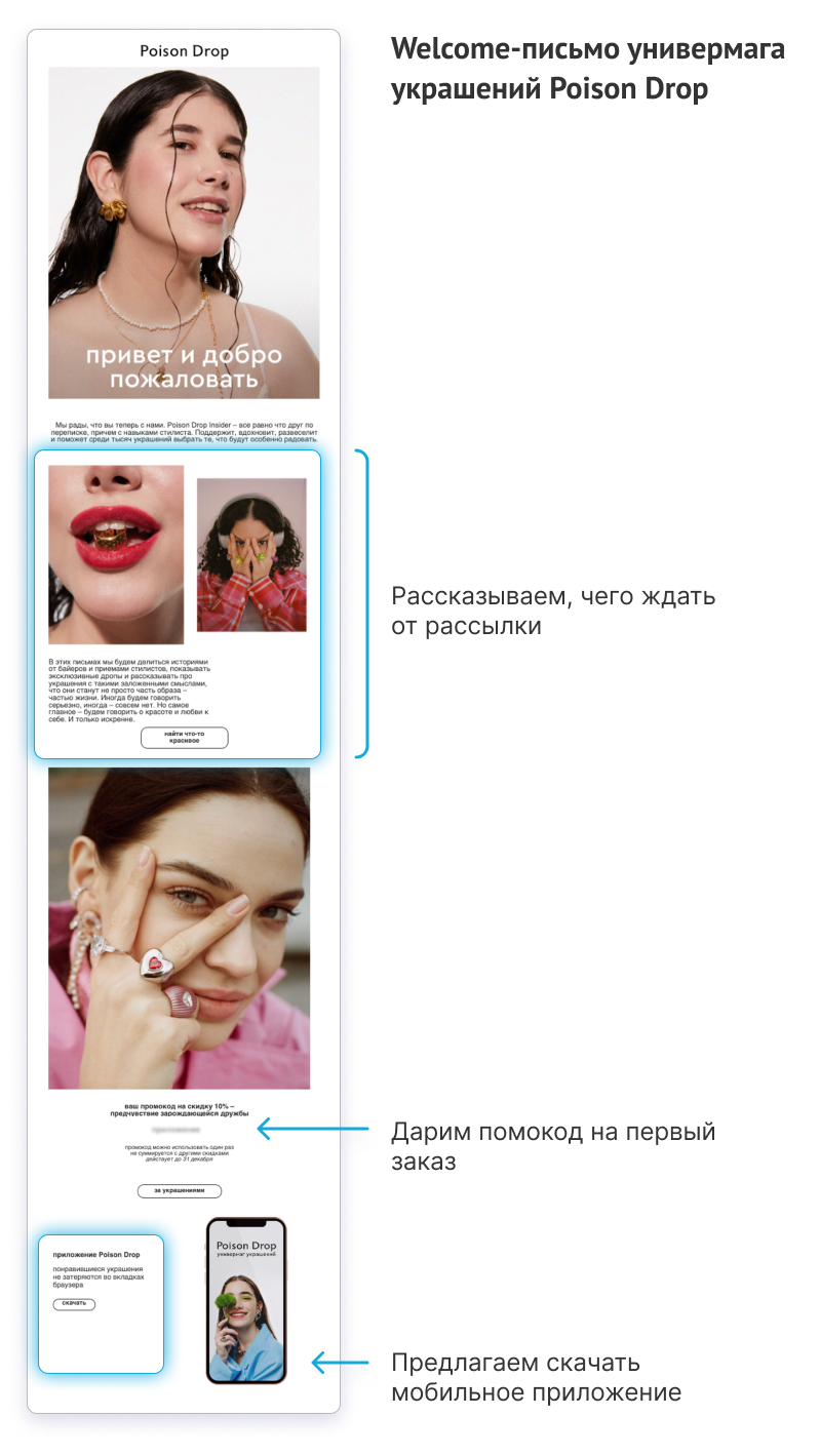 Poison Drop – один из моих любимых проектов. Коллеги стараются делать рассылки действительно полезными не только для магазина, но и для пользователей, и это приносит свои плоды. Мы им в этом активно помогаем – предлагаем новые сценарии, пробуем другие различные инструменты и итеративно улучшаем текущие результаты