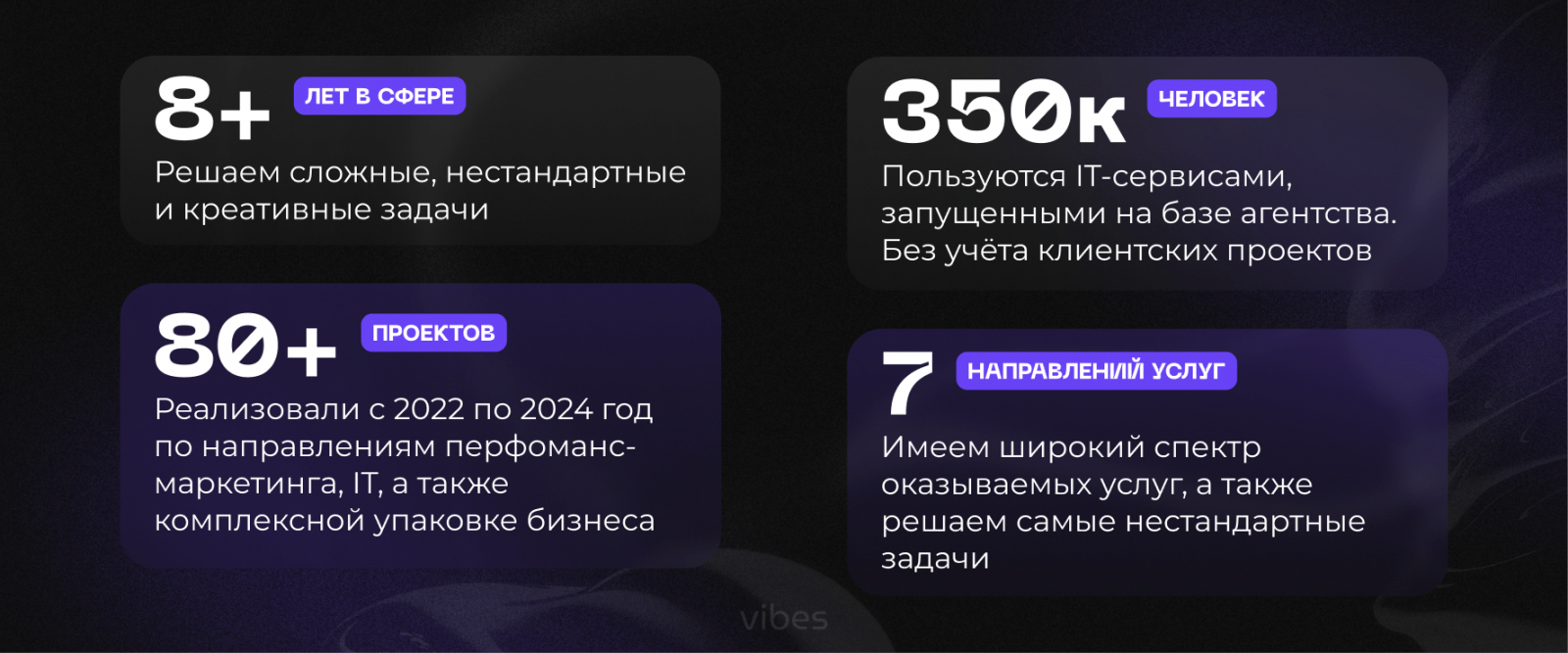 Агентство Vibes решает задачи со звездочкой, за которые не берутся остальные, с 2016 года.