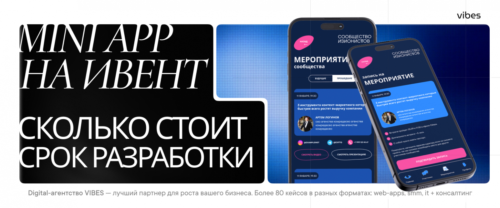 Напишите в Telegram @vibes_manager или на hello@vibes.band, и мы проведем консультацию, где подскажем, какое мини-приложение может подойти вашему мероприятию. Это бесплатно.