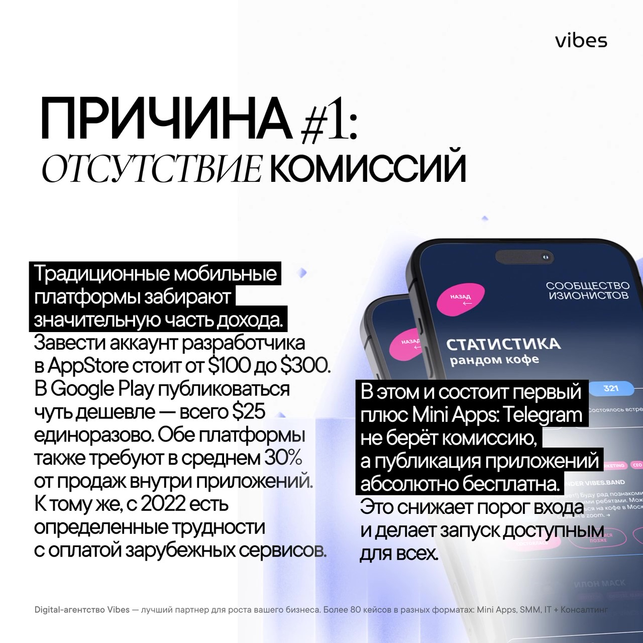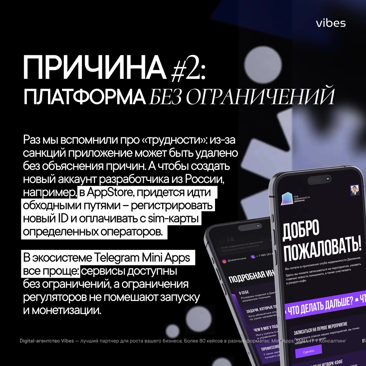 Мы готовы провести бесплатную консультацию — показать на примерах, как Mini App может сэкономить вам деньги, время и нервы. Напишите нам в Telegram @vibes_manager или на hello@vibes.band.