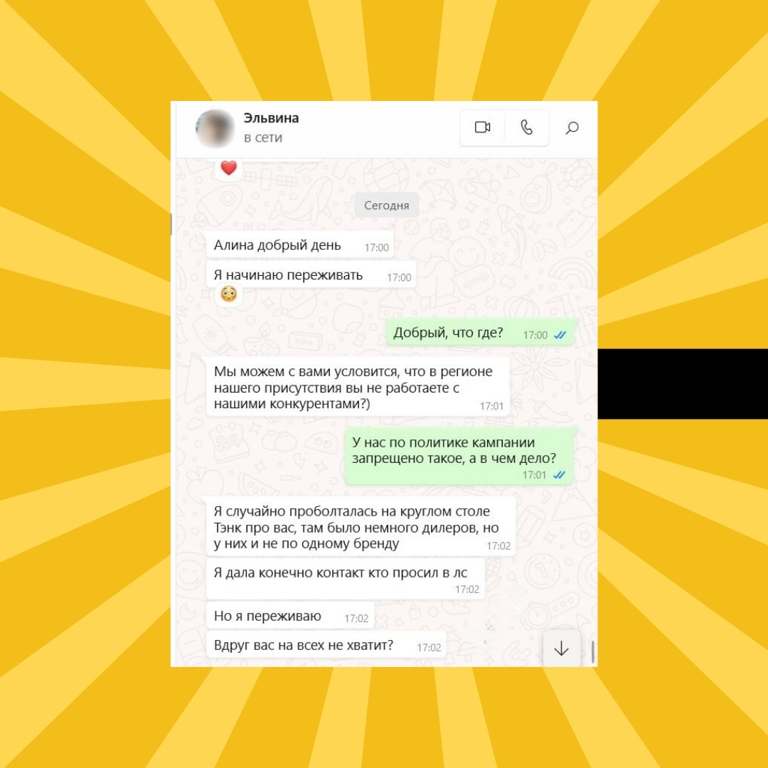 Один из любимых клиентов написал нам в личку: «Мы можем условиться, что в нашем регионе вы не работаете с нашими прямыми конкурентами?»