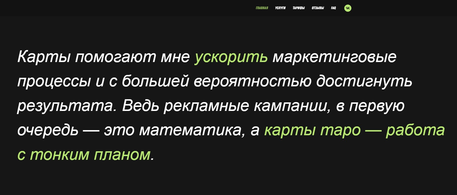 Тексты для сайта составлялись с использованием маркетинговой и эзотерической терминологии. И если в маркетинге мы сильны, то, как оказалось в таро - не очень. О чем нам не перестают напоминать представитель этой “профессии”, но об этом чуть позже.