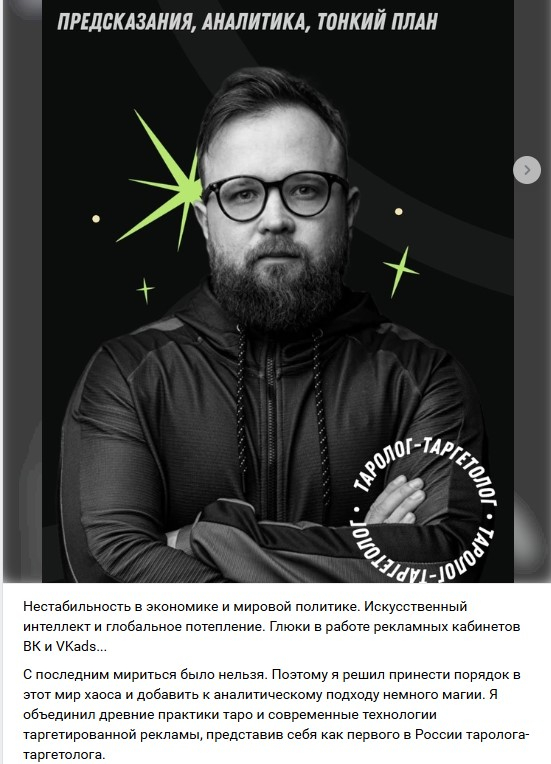 Эту акцию мы создали для собственного продвижения. Основатель нашего агентства лично выступил в роли таролога-таргетолога.