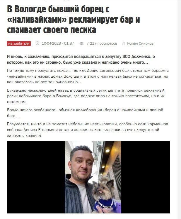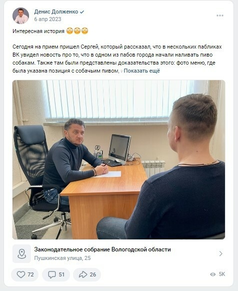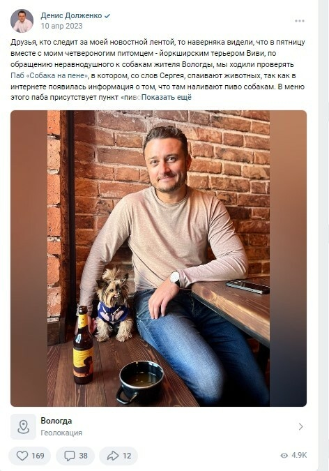 История с пивом для собак получила распространение и широко обсуждалось. И, как это часто бывает, дело дошло до местных депутатов. К одному из них пришёл мужчина и пожаловался на то, что «в вологодском пабе спаивают собак».