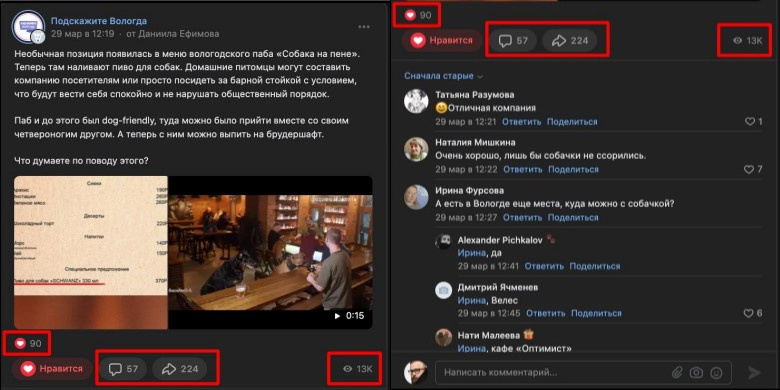 Мы получили дополнительный охват за счет публикаций у самого депутата. А историю с пабом, который «спаивает собак» и его проверкой мы превратили во вторую волну интереса к событию.