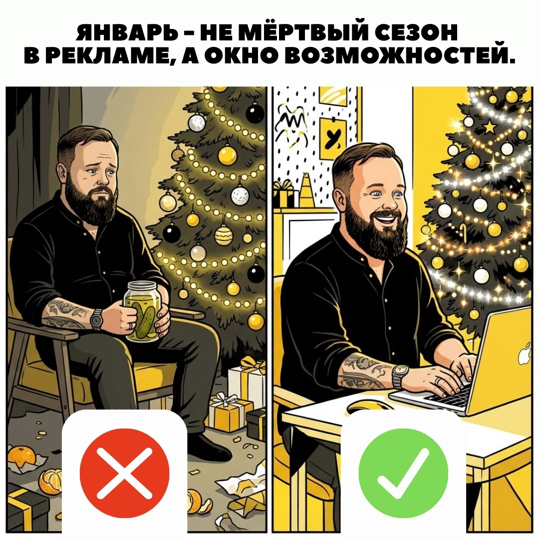 Каждый январь одна и та же история: конкуренты уходят в спячку, бизнес режет бюджеты, все ждут, «когда рынок оживёт». А мы в это время забираем самый дешёвый трафик и закладываем фундамент для весенних продаж.