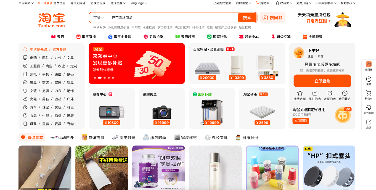 Крупнейшая розничная площадка Китая, где можно купить практически всё поштучно или небольшими партиями. В отличие от оптовых платформ, здесь легко тестировать новые товары без больших вложений.