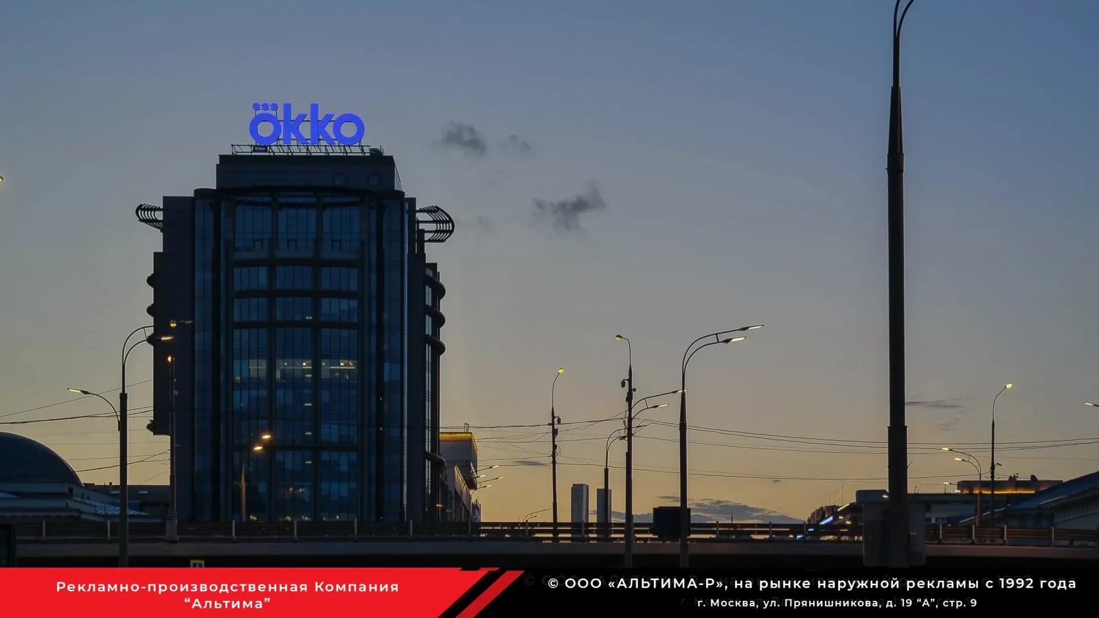 Компания «Альтима-Р» успешно реализовала проект по изготовлению и монтажу светодинамической крышной установки для одного из ведущих онлайн-кинотеатров России — ОККО, расположенной рядом со станцией метро "Парк культуры".