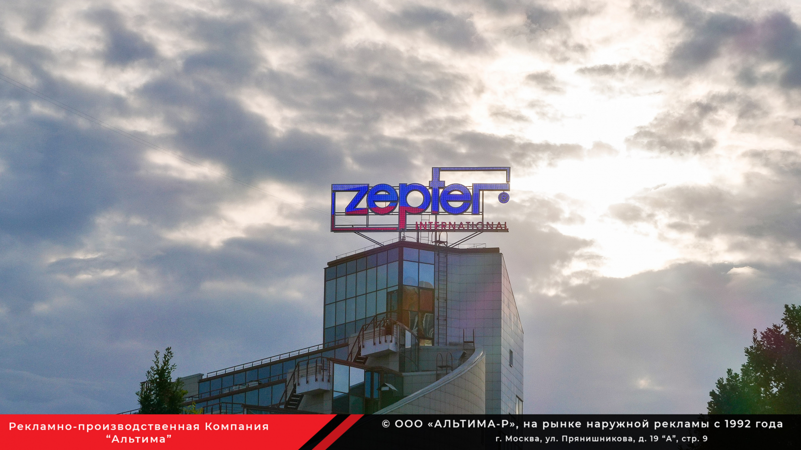 Группа компаний «Альтима», лидер в сегменте крупноформатных и нестандартных рекламных конструкций, завершила проект по изготовлению и монтажу светодинамической крышной установки ZEPTER для российского подразделения международного бренда Zepter International.