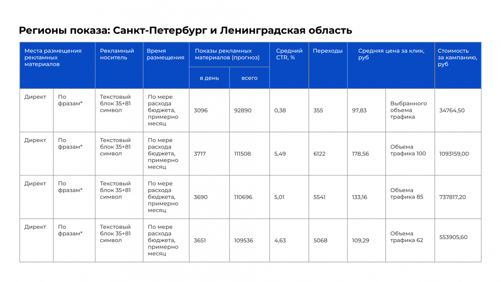 Убрали неподходящие по сегменту ключи: «дешевая», «бесплатная» или «по ОМС». А вот ключ «ДМС», наоборот, использовали. В Санкт-Петербурге крупные компании предоставляют ДМС своим сотрудникам на стоматологию. Нам было важно охватить эту аудиторию.