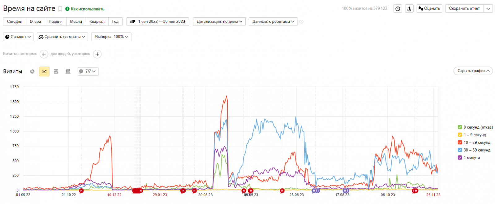 График трафика с сентября 2022 года по ноябрь 2023 года