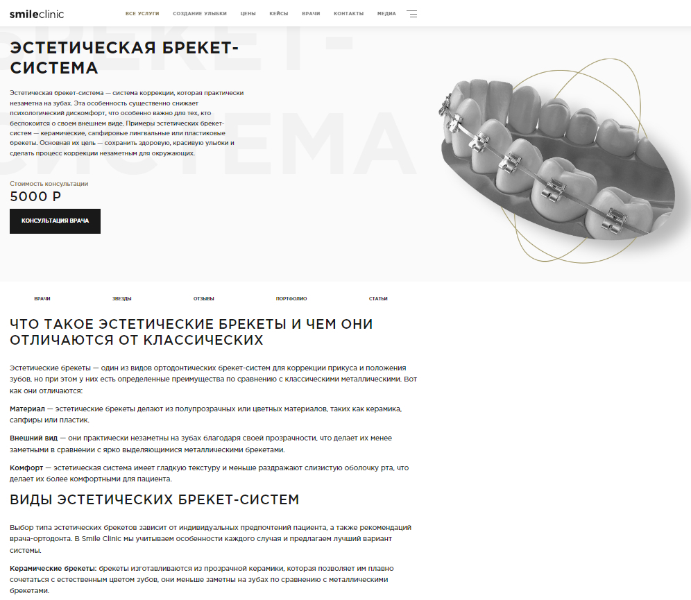 Клиент — премиум-стоматология под NDA, в которой устанавливают виниры, элайнеры, брекет-системы, реставрируют и протезируют зубы. Ключевое внимание уделяется ортодонтии и эстетическому восстановлению зубов.