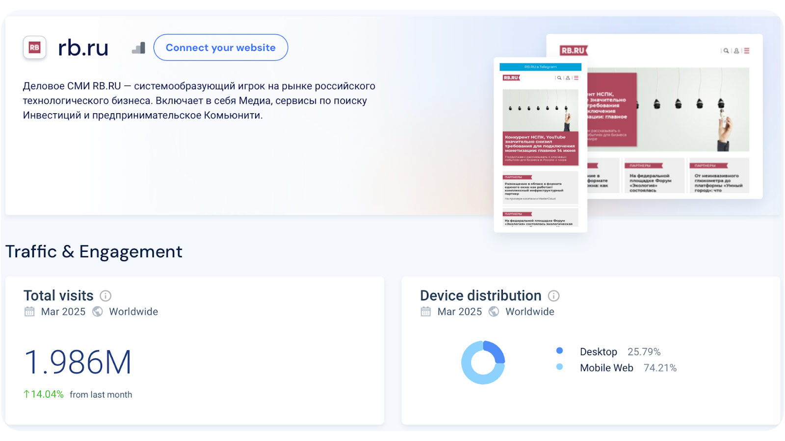 По внутренним метрикам показатель выше 2 млн MAU, однако по условиям NDA мы не можем публиковать материалы проекта, но схожие значения показывает и общедоступный сервис Similarweb.