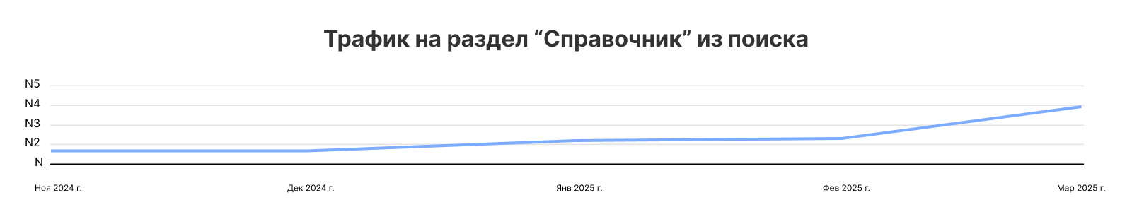 Рассмотрим отдельно по каждой рубрике роль, содержание и рост трафика с момента запуска к марту 2025 года.