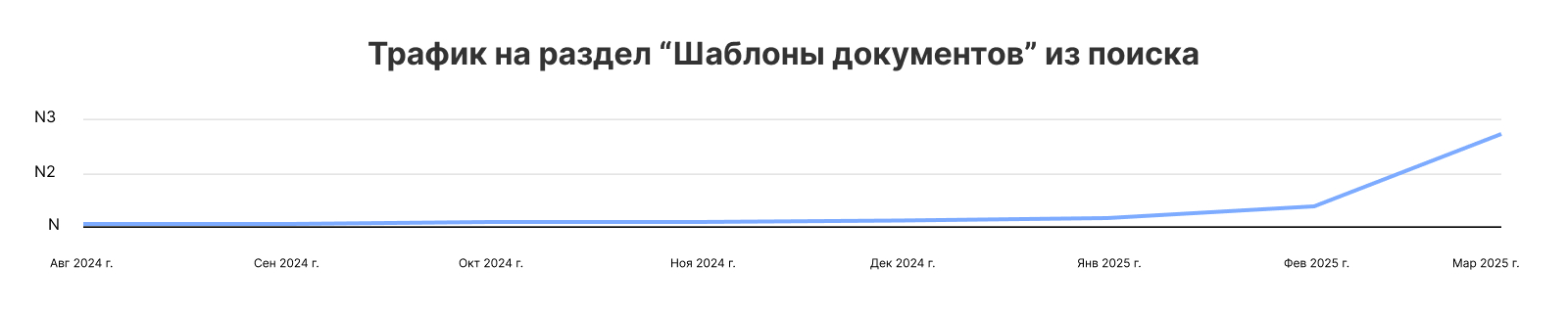 В этом разделе публикуются актуальные шаблоны документов, с которыми имеют дело предприниматели и которые необходимо составлять по правилам. Раздел так же создавался сразу под SEO. Мы формировали SEO-требования к функционалу страниц, определяли объем текста и как организовывать внутреннюю перелинковку.