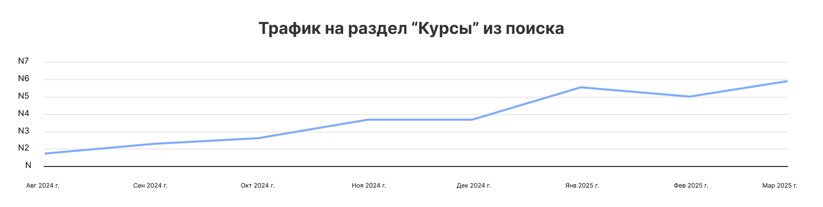 Главной целью нашего сотрудничества был запуск образовательной платформы и привлечение на нее трафика за счет SEO.