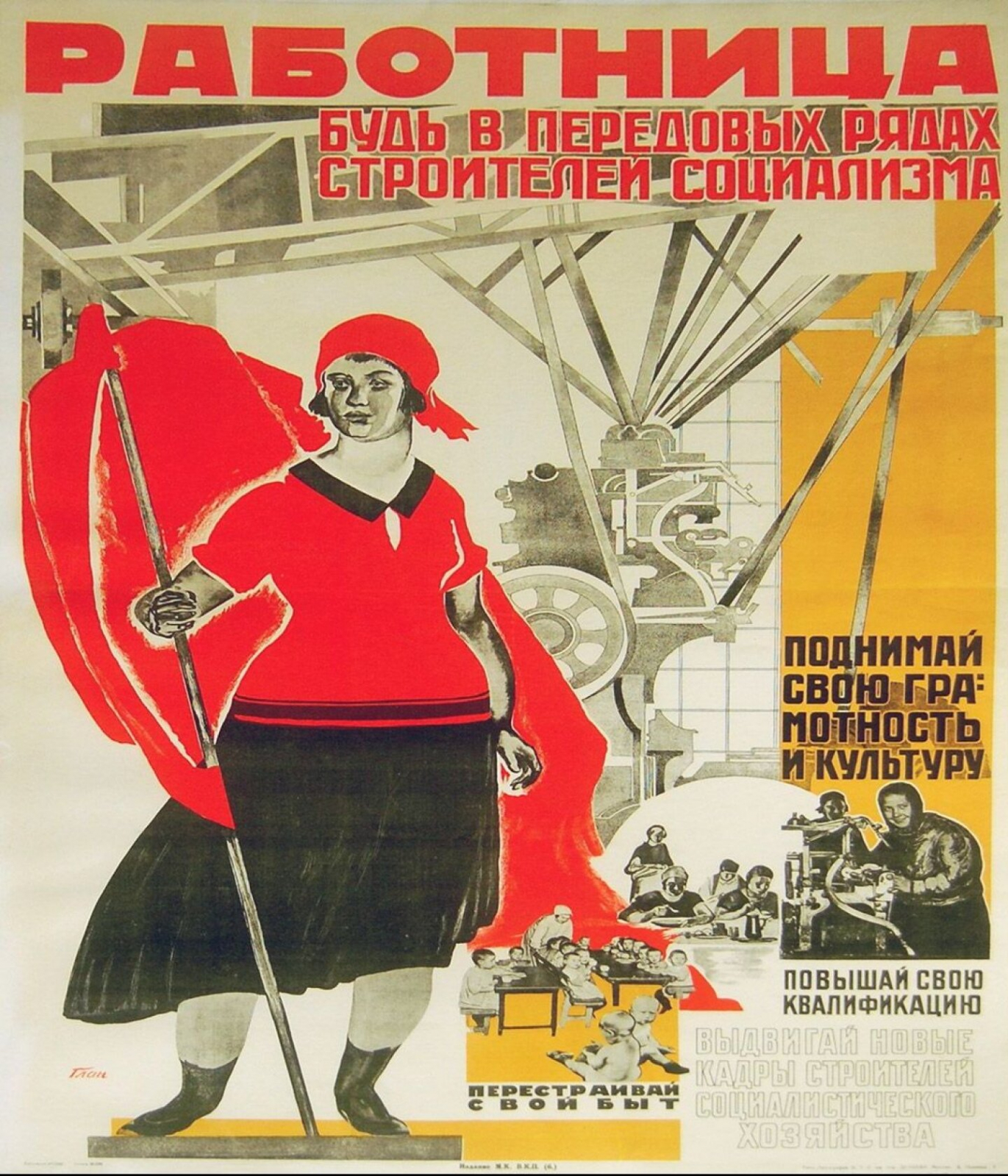 Тренд, заданный в первые годы строительства социализма, сохранялся вплоть до 1960-х годов. Советские плакаты утверждали: женщины достигают невероятных успехов в труде и борьбе за равноправие. Поэтому героинями классических плакатных сюжетов становились, как правило, рабочие, учительницы, врачи и инженеры, а лозунги подчеркивали роль женщин в строительстве социалистического будущего.