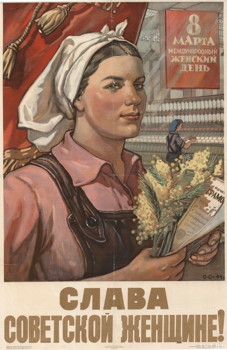 Визуальный код 8 Марта в СССР был во многом идеологизированным, выстраивался с целью пропаганды. Причем пропаганды довольно нестандартной: праздник в Советском Союзе отмечался «с целью мобилизации женщин на строительство социализма».