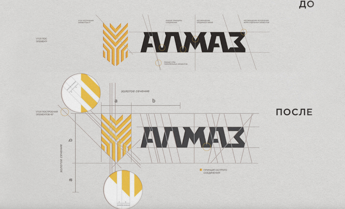 Редизайн логотипа «Алмаза» стал примером очень тонкой, почти ювелирной работы.