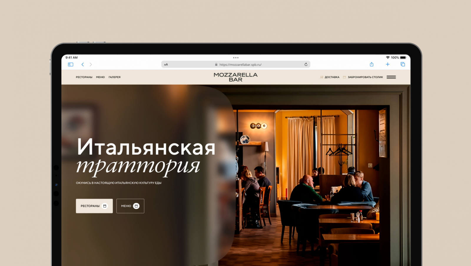 «Mozarella bar» — сеть ресторанов в Санкт-Петербурге. Команда траттории решила обновить сайт, т.к. старый уже не отвечал современным требованиям.