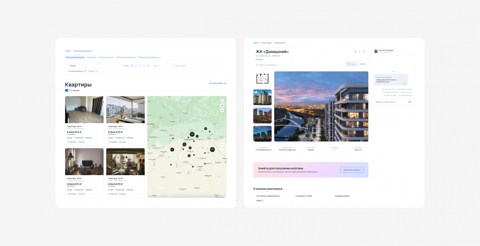 Проблематика большинства сайтов агентств недвижимости в перегруженном главном экране: куча акций, сложный фильтр и непонятная навигация. Всего этого мы избежали при проектировании.