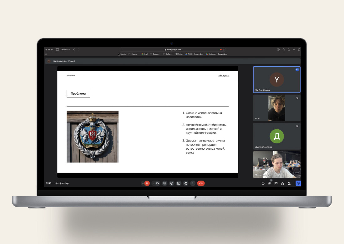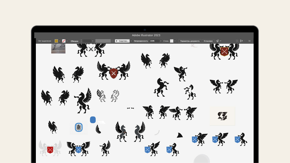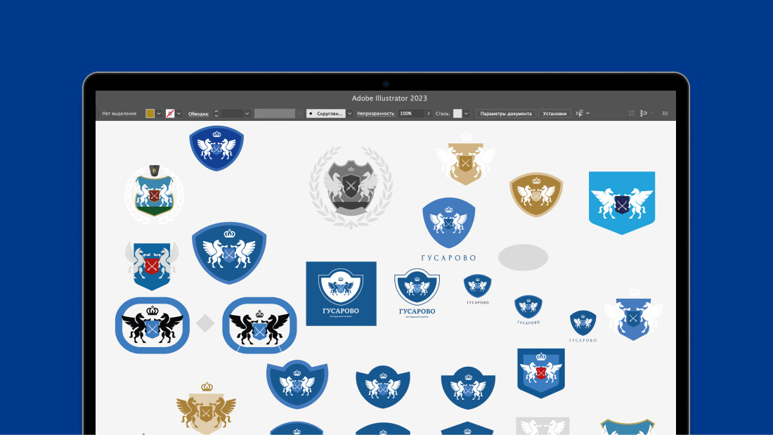 Скрывать не будем, необходимо было освежить память. Поэтому пошли в «интернеты» смотреть на тему геральдики: собрали кучу референсов, почитали историю и принципы формирования гербов и поехали работать ручками.