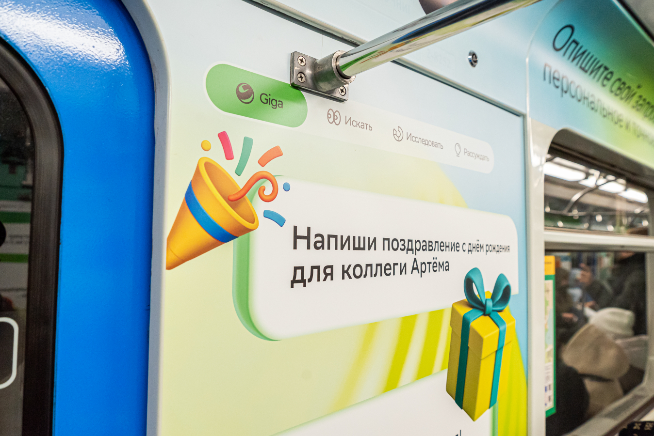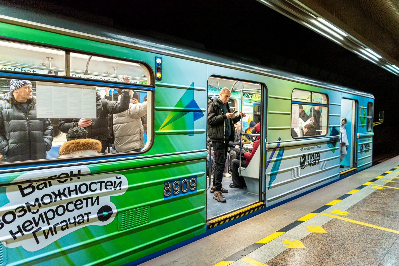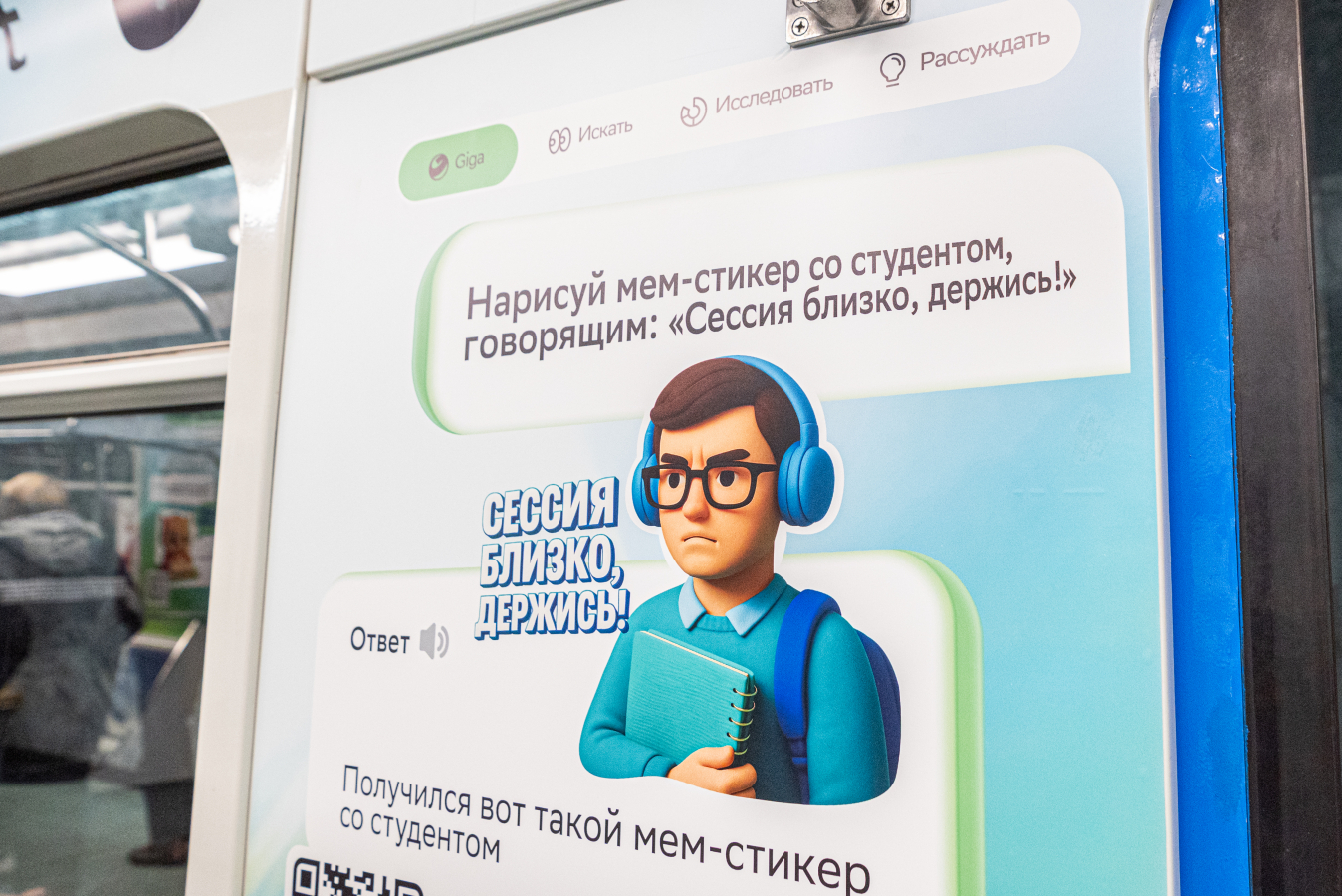 8 декабря в екатеринбургском метро запустили тематический поезд про GigaChat: внутри — примеры запросов для учёбы, быта, рутины и творчества. Проект сделали команды GigaChat, Сбербанк и СберМаркетинг.