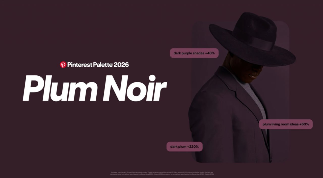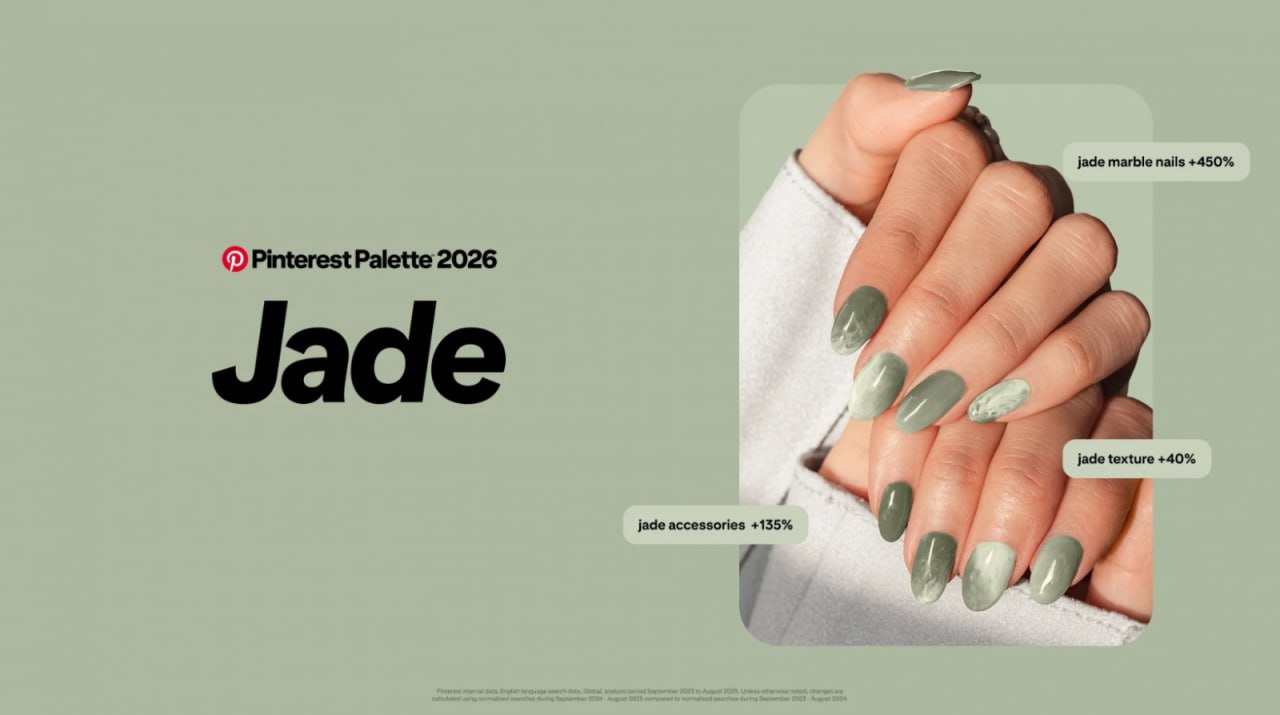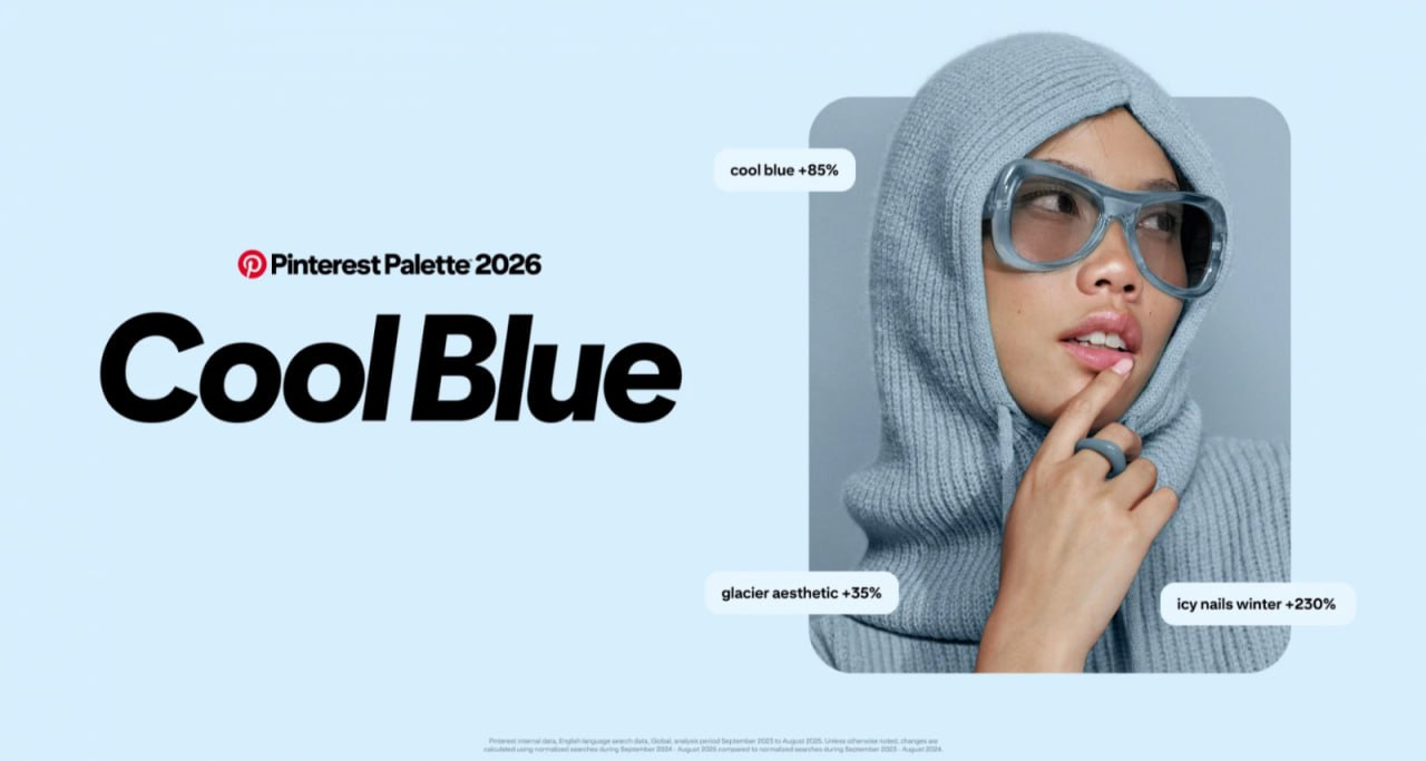 Pinterest выпустил прогноз «Палитра 2026» и выделил пять ключевых оттенков года: холодный синий, нефритовый, сливово-чёрный, васаби и хурма. Палитру собрали на основе анализа миллиардов поисков и сохранений у аудитории Pinterest (порядка 600 млн пользователей). Также подключили визуальный анализ изображений и финальную проверку внутренними экспертами по цвету.