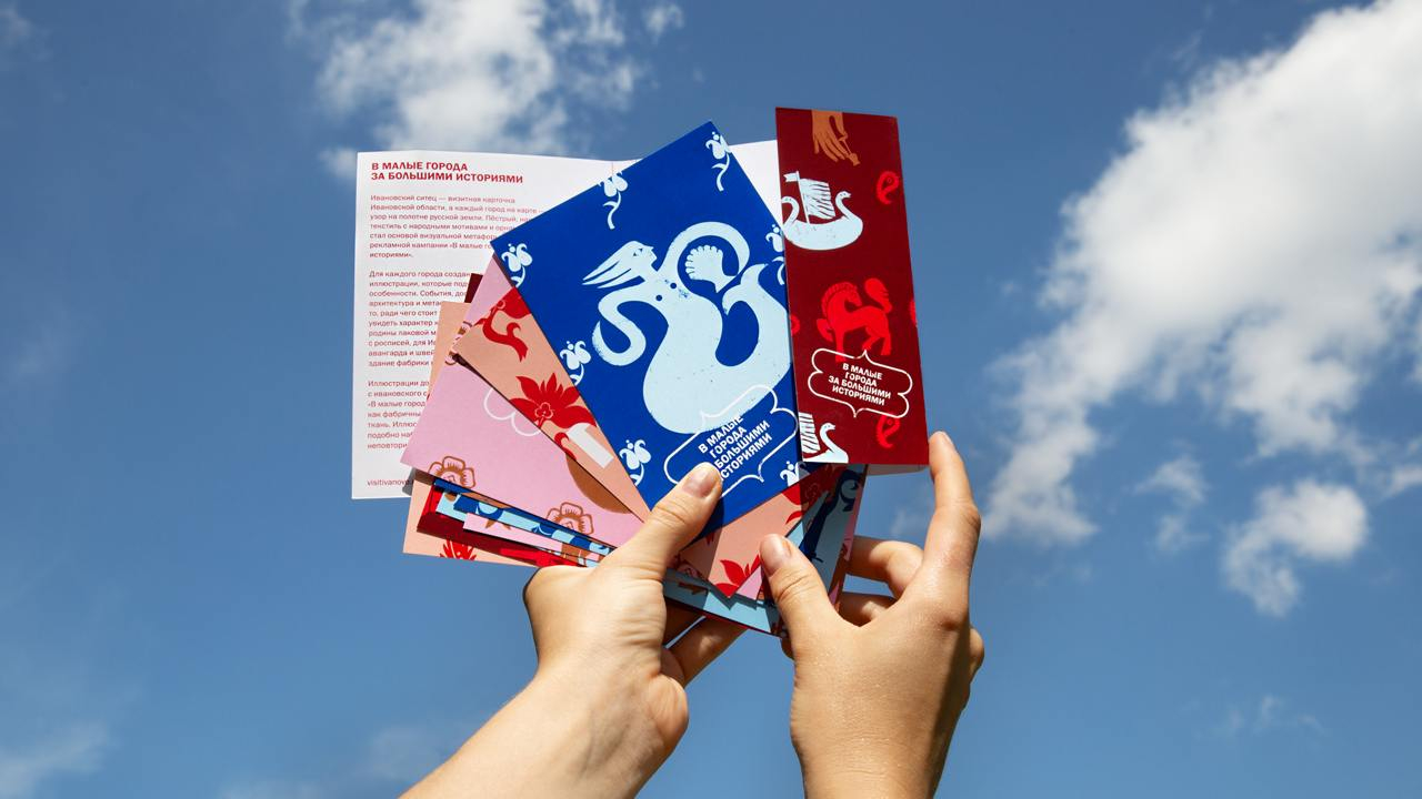 Так, для Visit Ivanovo мы создали набор тарелок, рассчитанных на повседневное использование, а также серию открыток, которые можно было купить в качестве сувенира или отправить из городов Ивановской области друзьям и близким.