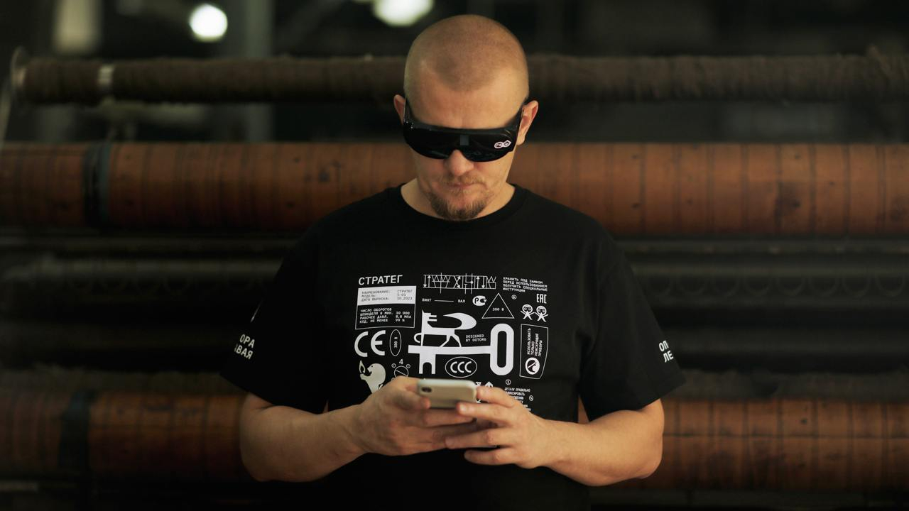 Инструкции к станкам и технические описания превратились в копирайтинг для футболок, стикеров и шопперов. Каждый человек в агентстве — неотъемлемый элемент креативного «бренд-производства», поэтому на футболках появилась кнопка включения и техническая маркировка: «Часы эксплуатации с 10:00 до 19:00», «Проверяй заземление», «Не включать впустую». Фразы, заимствованные у механизмов, на одежде обрели новый, человеческий смысл.