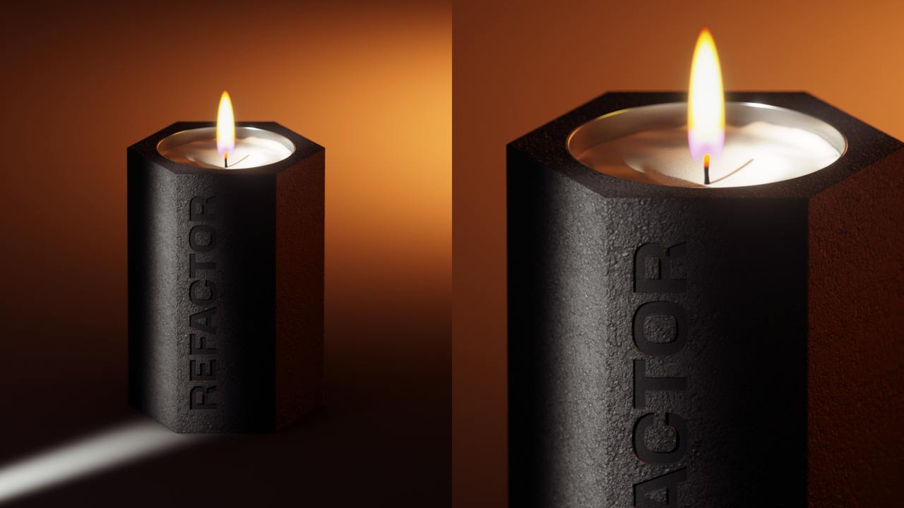 Визуальная система Refactor построена на противостоянии раскалённого металла и огнеупорного компонента — надёжного настолько, что он выдерживает тысячи градусов. Эта идея легла в основу фирменного стиля и получила продолжение в мерче: в шахматах, символизирующих противостояние, в свече, которая буквально сдерживает огонь, и в худи с надписью «огонь внутри», который рассказывает не только о специфики работы компании, но и о любви сотрудников к своему делу.