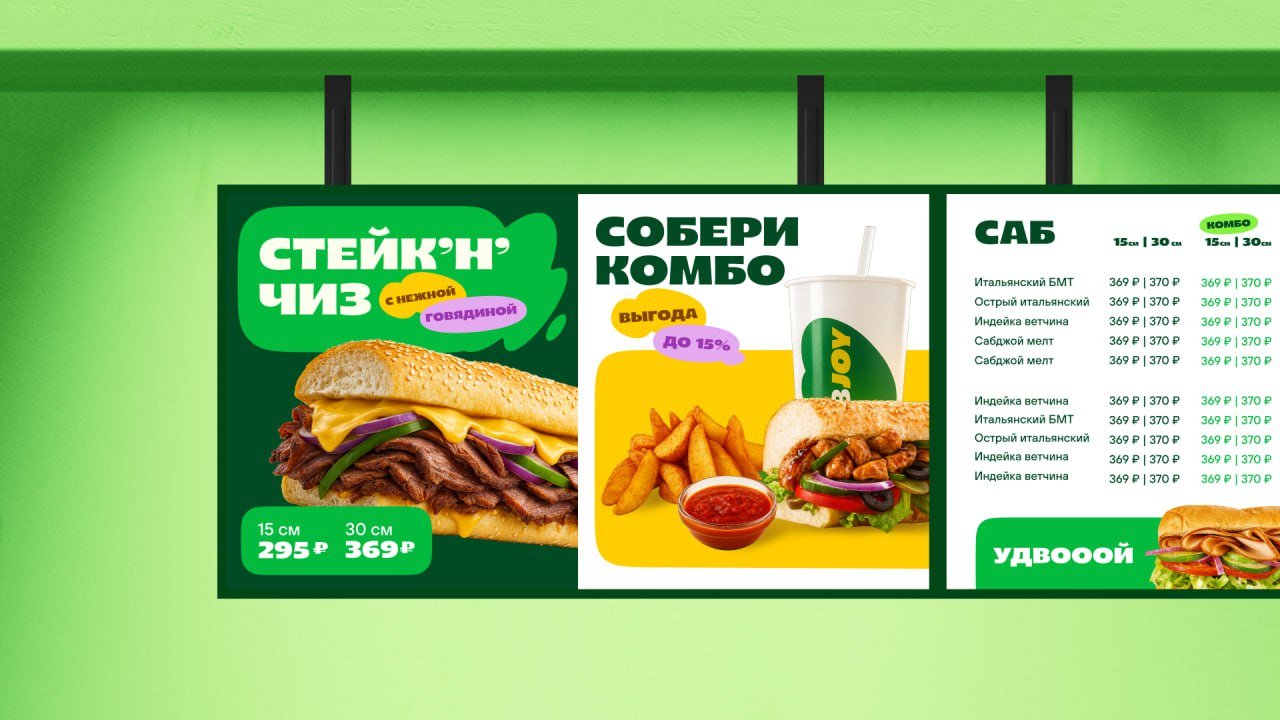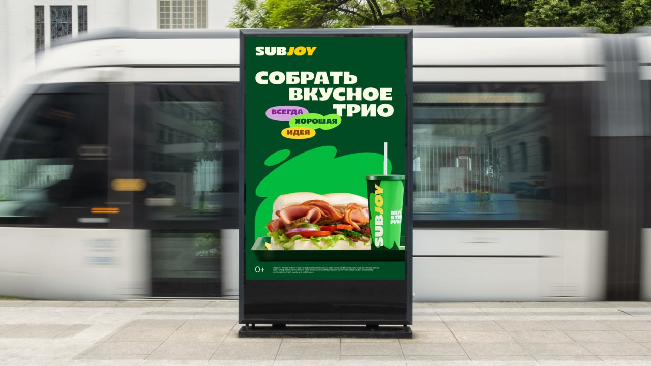 Недавно случилось историческое саббытие – SUBWAY теперь SUBJOY. Еще в 2010-х годах сеть опережала McDonald's и выросла до 700 точек по всей стране. А уже в этом году мы нашей большой командой провели ребрендинг одной из самых больших сетей.