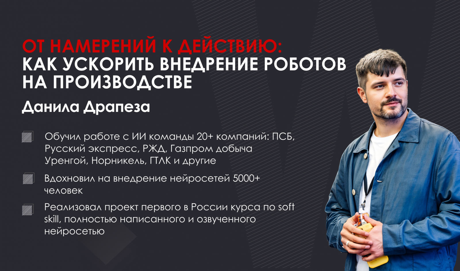 Данила Драпеза — модератор, руководитель центра компетенций по искусственному интеллекту и нейросетям группы компаний WINbd.