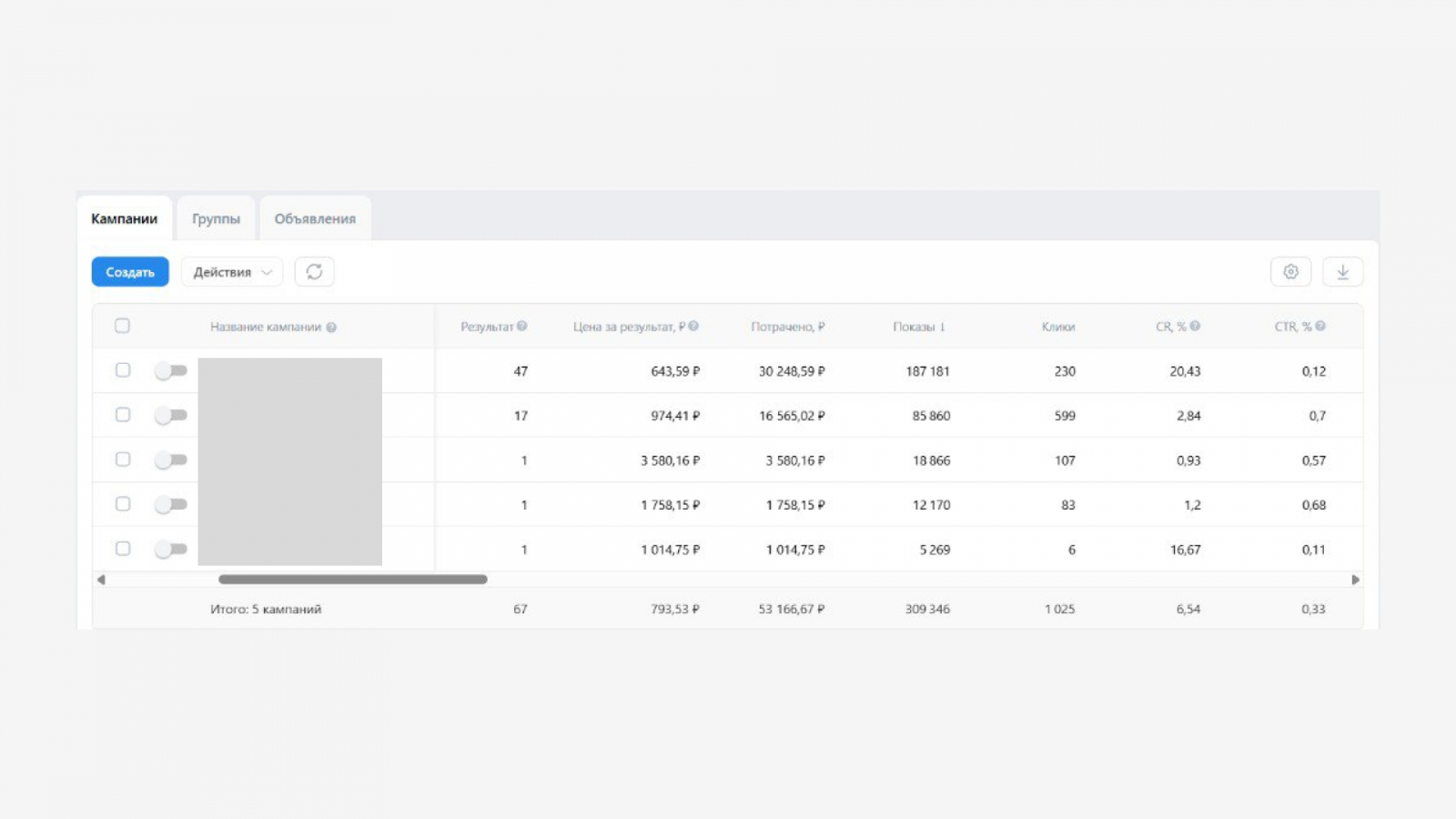 Ниже вы можете увидеть скриншоты из нового рекламного кабинета. За месяц мы смогли получить 67 заявок по 792 ₽.