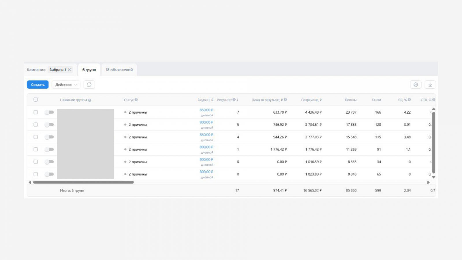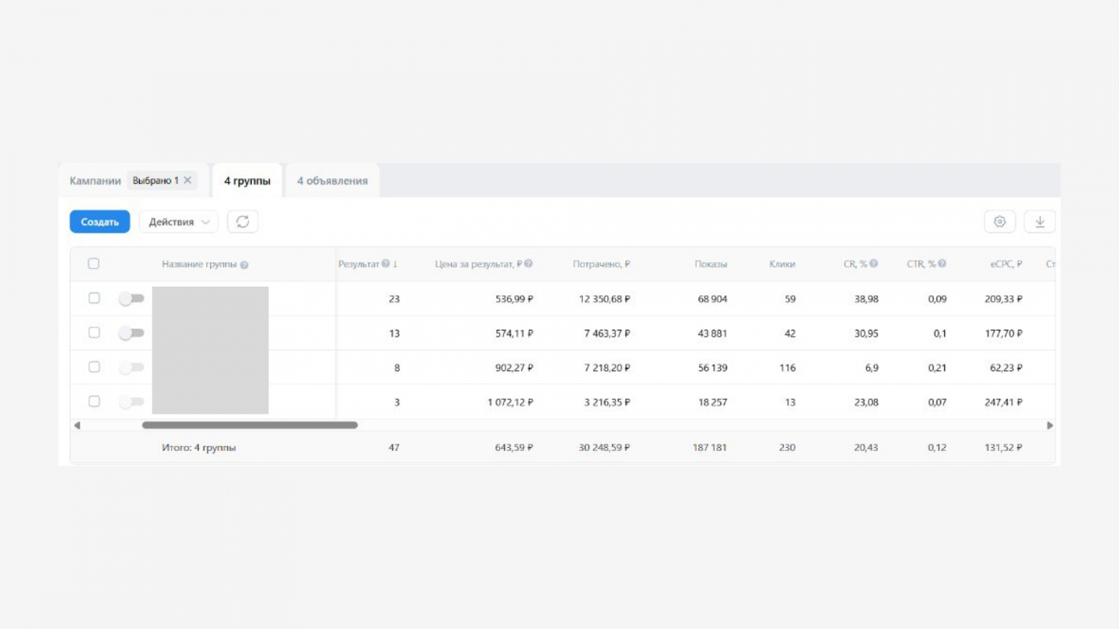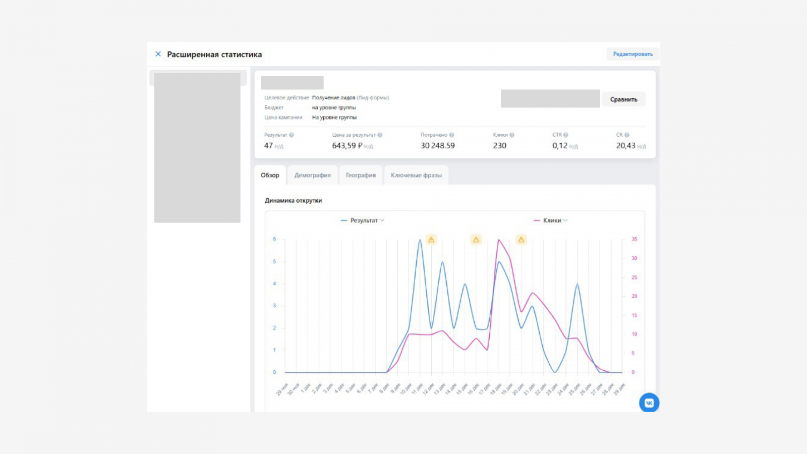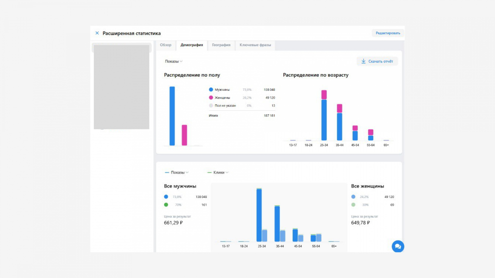Ниже вы можете увидеть статистику из рекламного кабинета.
