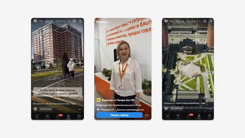 Одним из ключевых элементов кампании стали вертикальные клипы — короткие ролики продолжительностью до 60 секунд. Именно клипы обеспечили нам большую часть заявок, а их стоимость оказалась заметно ниже по сравнению с другими форматами. Кроме того, заявки с клипов были не только дешевле, но и качественнее — люди чаще вовлекались в общение, были лучше осведомлены о предложении и чаще доходили до коммуникации с отделом продаж.