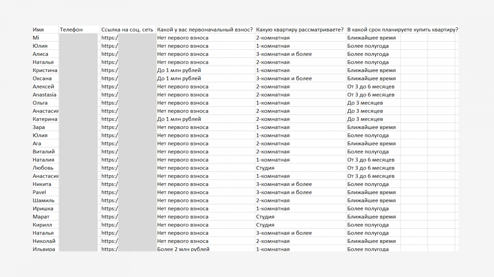 Каждая заявка, поступающая через лид-форму, содержит номер телефона клиента, ответы на предварительные вопросы, дату и время подачи. Кроме того, в заявке есть ссылка на профиль пользователя ВКонтакте. Это удобно: если клиент не отвечает по телефону, всегда можно написать ему напрямую в соцсети.Чтобы быстрее связываться с потенциальными покупателями, мы рекомендуем дублировать информацию о заявках в WhatsApp.