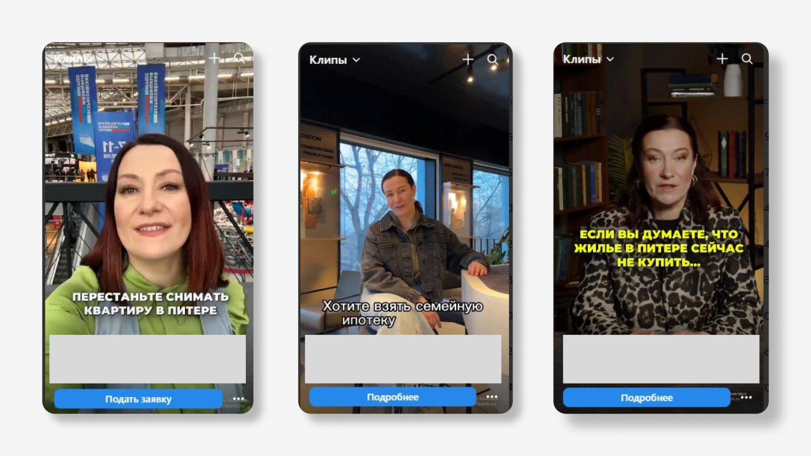 Какие клипы сработали у нас:За полгода работы с агентством недвижимости из Санкт-Петербурга мы запустили клипы по четырём направлениям: квартиры без первоначального взноса, семейная ипотека, универсальные креативы в ленте и клипы-обзоры.