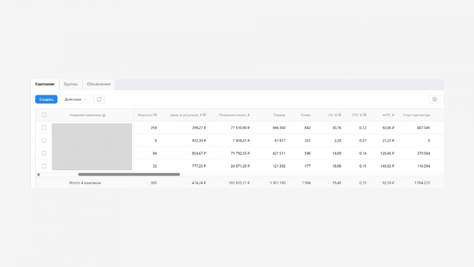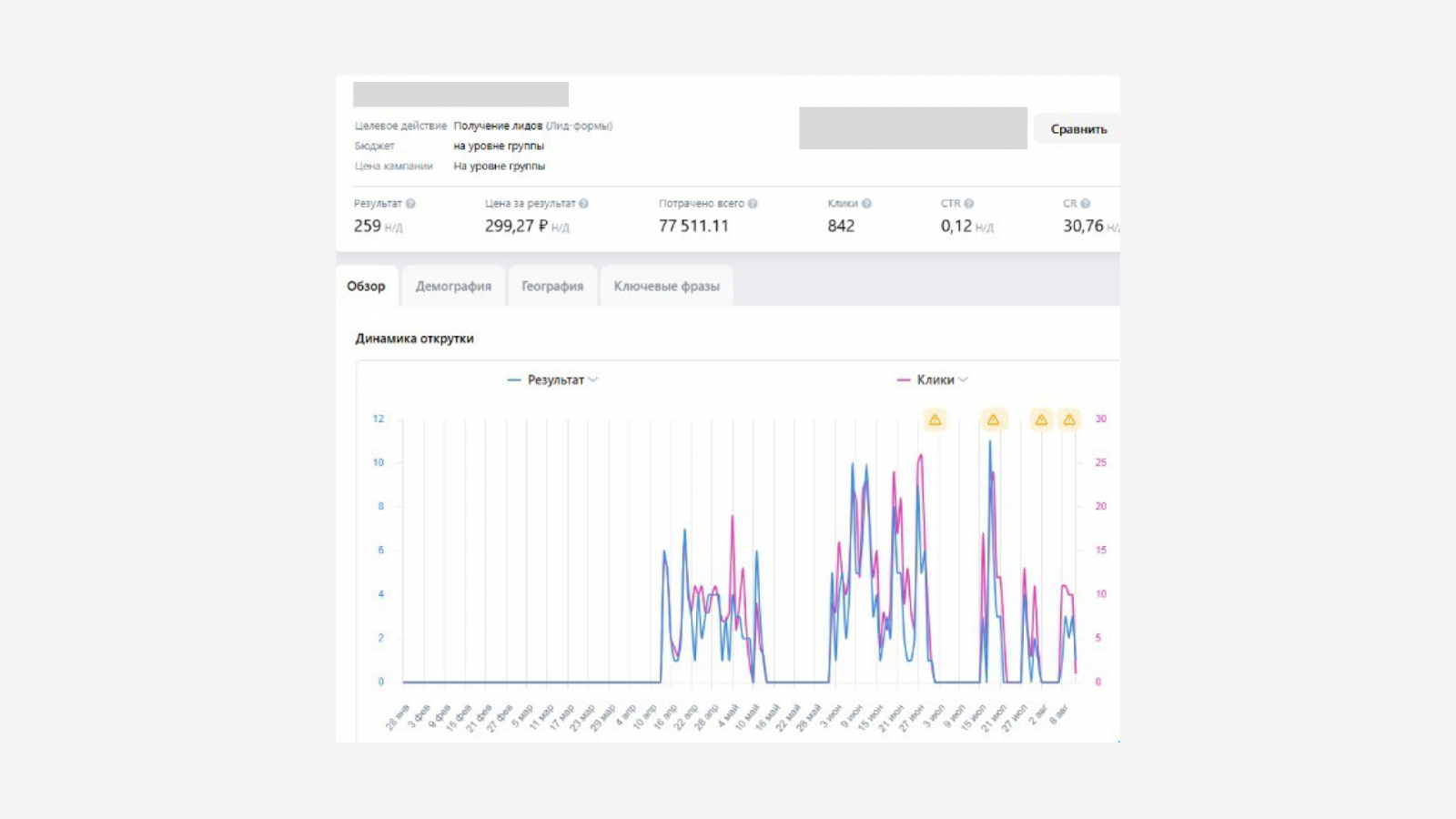 Ниже можно увидеть скриншоты статистики из рекламного кабинета ВКонтакте: