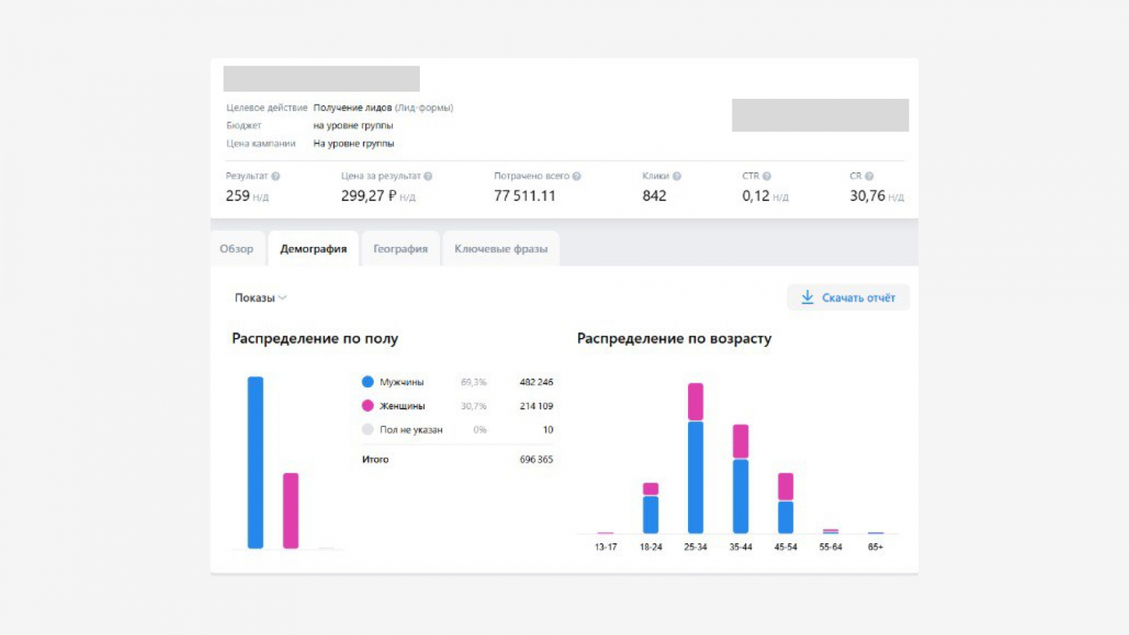 По аудиториям:Основная активность пришлась на мужчин (69% показов), особенно в возрасте 25–34 года. Женщины составили 31% аудитории, но также показали высокий интерес в этой же возрастной группе.