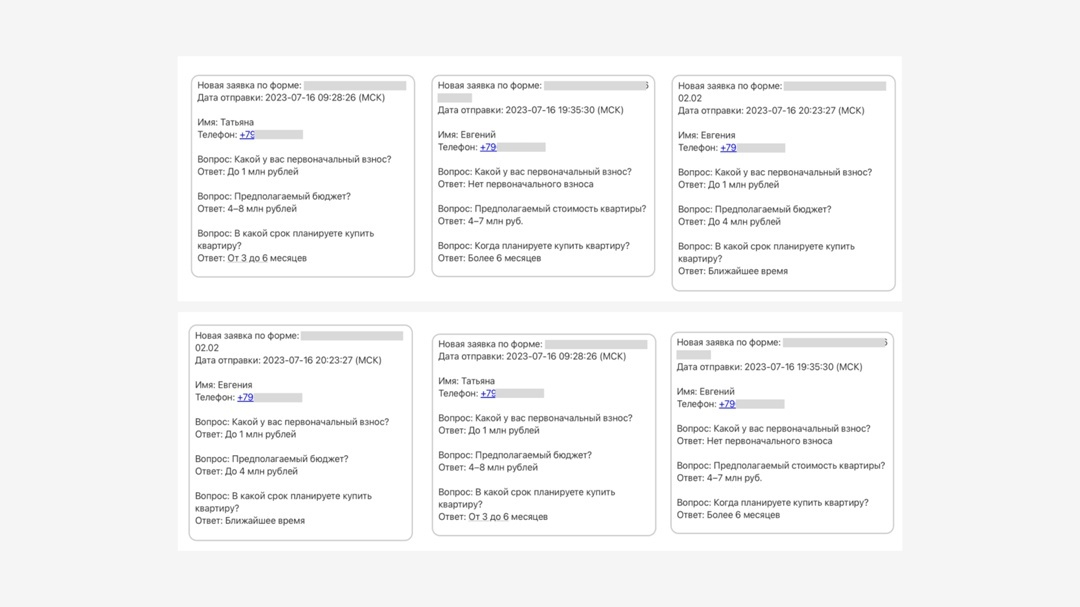 Ниже представлены реальные примеры заявок, чтобы наглядно показать, какую информацию получают риелторы: