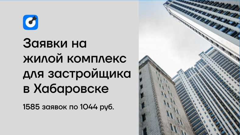 В этом кейсе мы показываем, как настраиваем рекламу на жилой комплекс для застройщика из Хабаровска. За год работы нам удалось получить 1585 заявок по средней цене 1044₽.