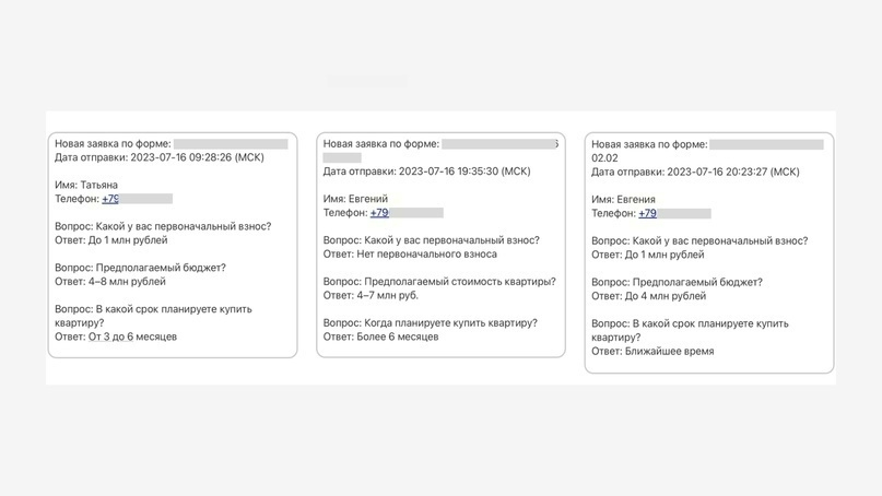 Тут вы можете увидеть какие бывают заявки с лид-форм.